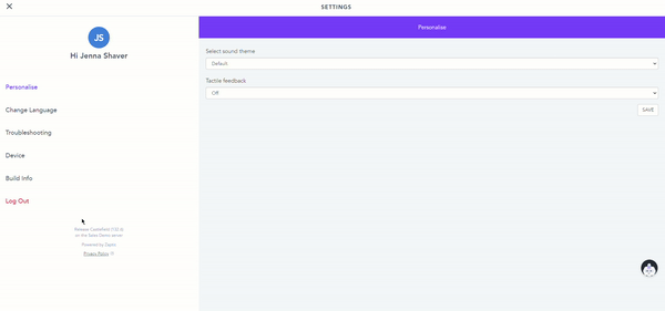 You can access the App Version by going to the icon, and scrolling to the bottom. You'll see the Release number (in this example "Castlefield 132.6) and the server. The Support team may ask you for this information.