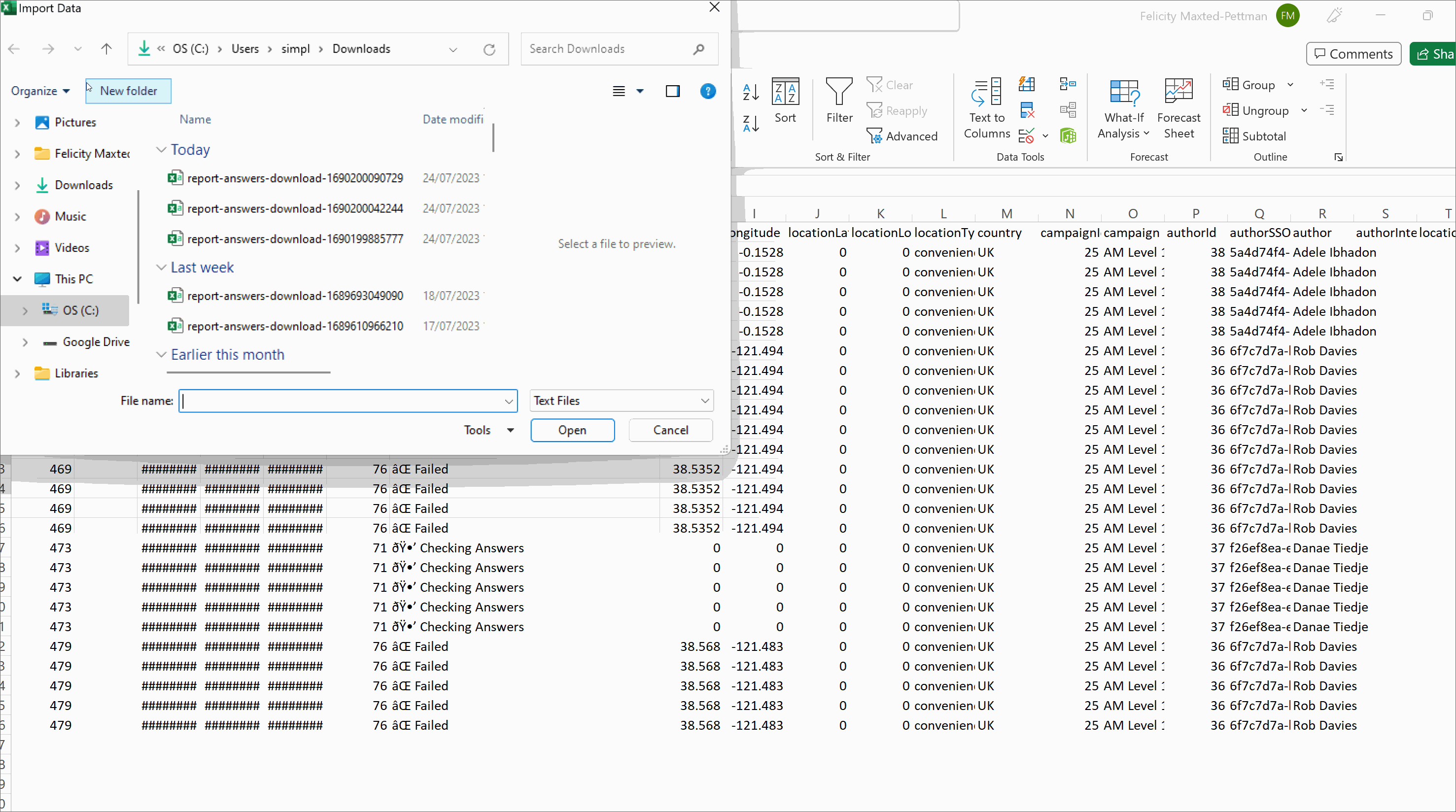 - To fix this, if you're using Excel, go to Data> From Text/CSV, then select the file you downloaded from Zaptic.