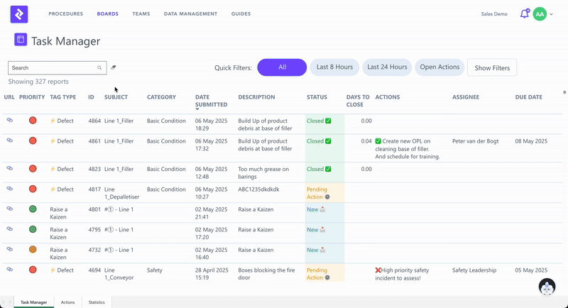In Zaptic, every task an operator completes — whether scheduled or ad hoc — generates a report. These reports capture structured data submitted from the shop floor and can be reviewed and acted upon through both the app and the portal.