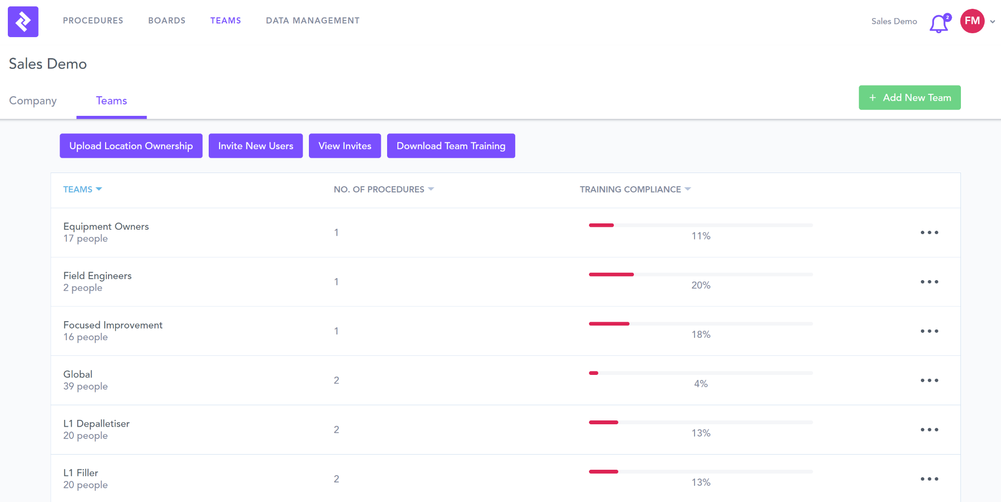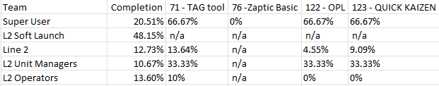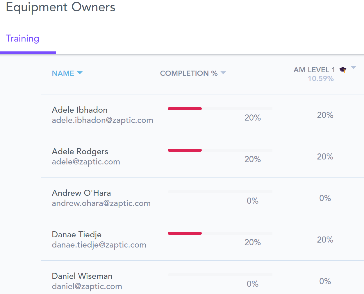 - Within the Zaptic Portal in the “Teams” page you can see at a glance the completion of the Training on a per-team basis.