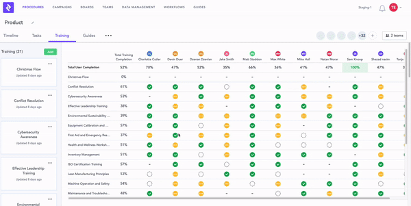 - You can see which Zaptic User has completed which Training session in this particular Procedure.