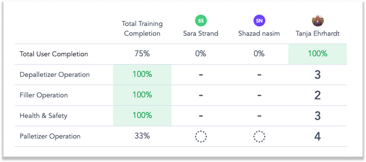 Training can be marked as completed from the training matrix, making it easier to get started with training and bringing in external certifications.This is great for keeping all shop floor training records in one place and ensuring people have the right certifications to carry out tasks.