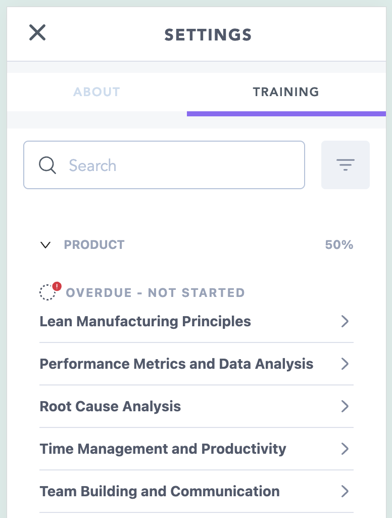 Individuals can view their training on their profile page in the app, helping with tracking their progress and personal development as well as seeing what training is left for them to do.