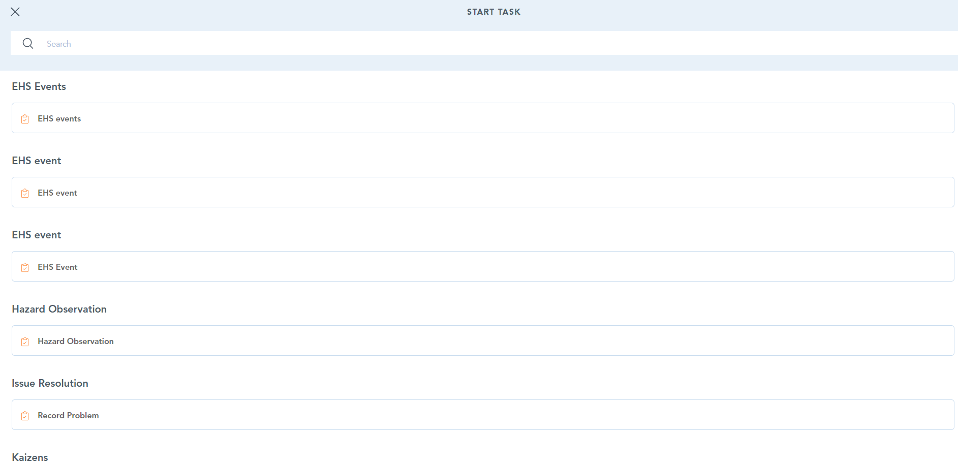 The ad-hoc menu (also known as the + button) allows users to start tasks available to them that are not scheduled. This allows users to search for tasks and raise ad-hoc, when they need too. This page can be searched for the name of the task.