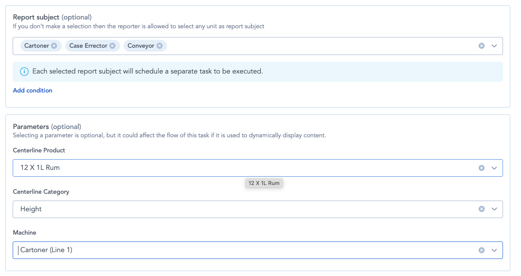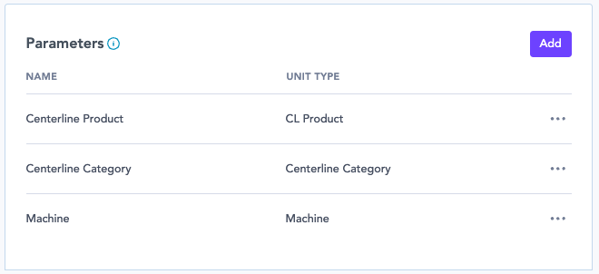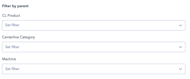 If your content loop uses filters for CL Product, Centerline Category, and Machine, create one parameter for each of these unit types.