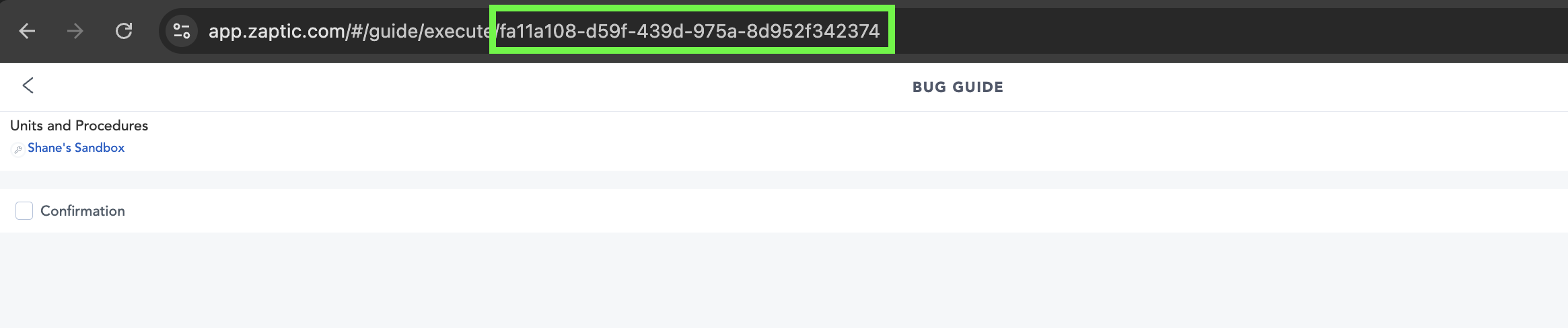 The specific Guide ID can be found at the end of the webpage's URL when opening the Guide on the Portal or App via a web browser.
