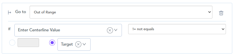 - Add a Centerline set of steps for each type of Centerlines (Range, Target, Confirmation) - followed by the Out of Range step and add the conditional routing.