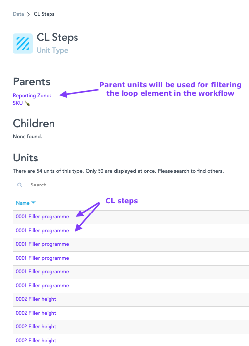If following this example: The Centerline Step Unit must have parents in SKUs and Machine/Reporting Zones.