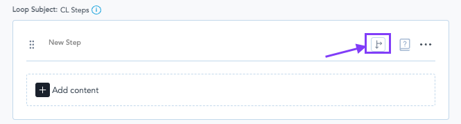 - In the workflow, we will add a new step and then press on the + button to open the list of elements and select the Content Loop.