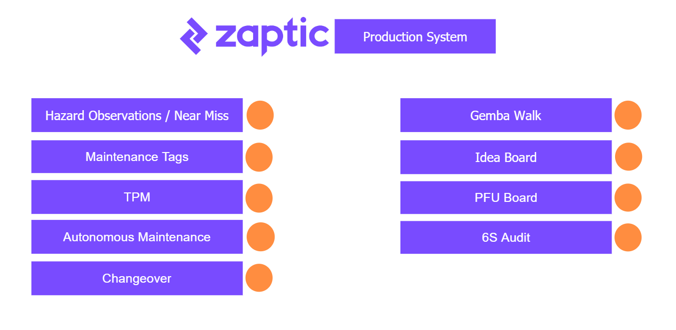 Units in Zaptic can be any item on the shop floor, i.e., a line, a machine, a department, et cetera.