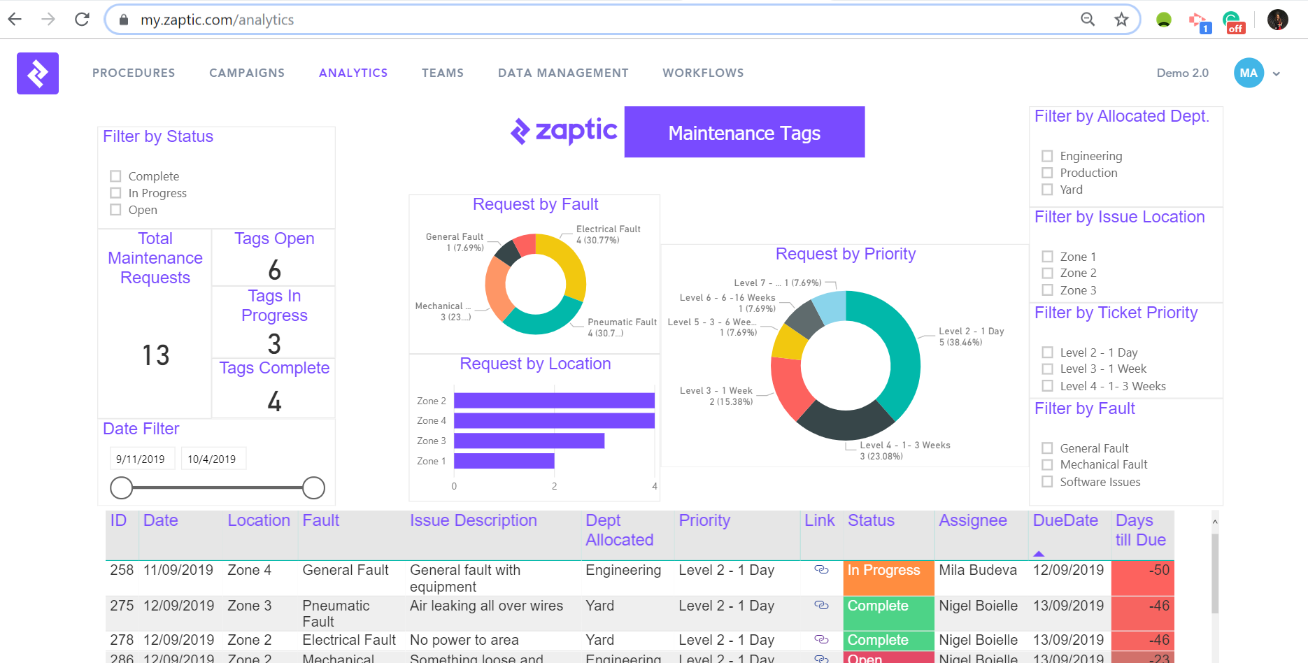 A visual aggregation of the data captured in Zaptic.
