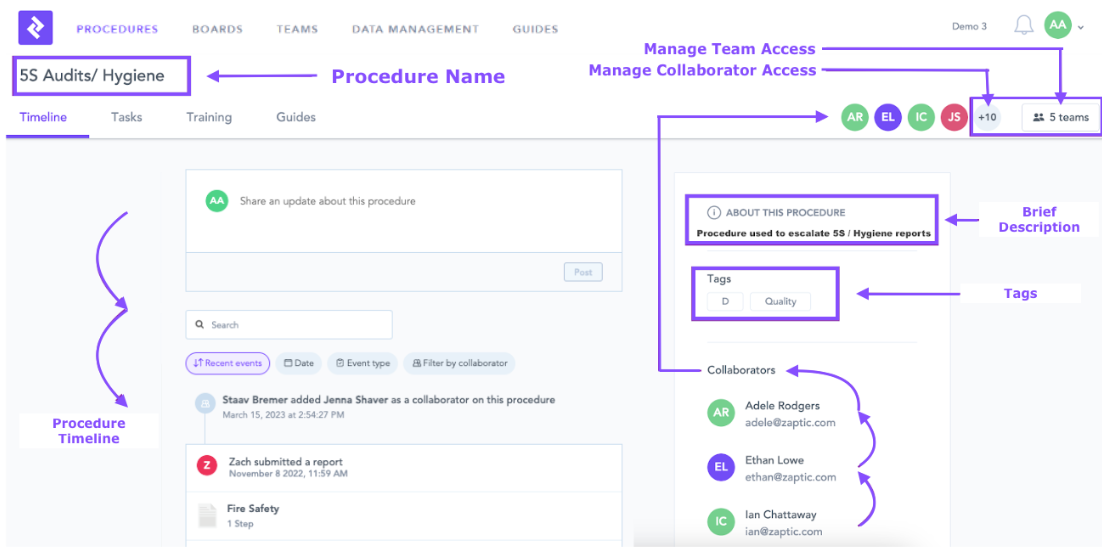 - Teams can be created/ edited, and users invited to the Zaptic platform.