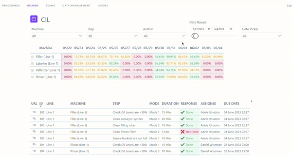 This board shows both specific and aggregated issue and action data and helps drive adherence.
