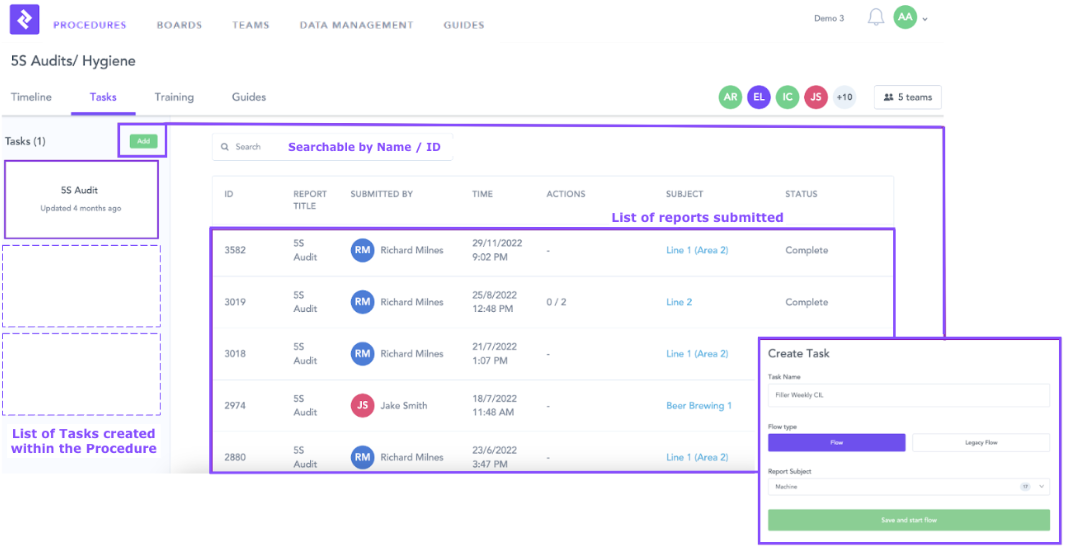 - Procedures are created, maintained and distributed, and execution is tracked and visualized.